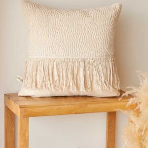 Tejido elaborado 100% a mano, este cojín es ideal para dar vida y color a espacios como salas o habitaciones.