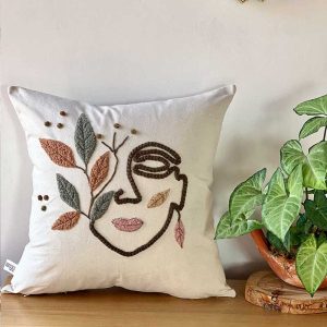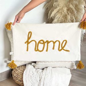Tejido elaborado 100% a mano, este cojín es ideal para dar vida y color a espacios como salas o habitaciones.