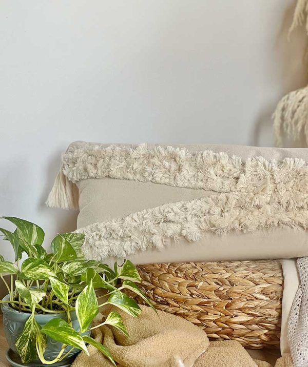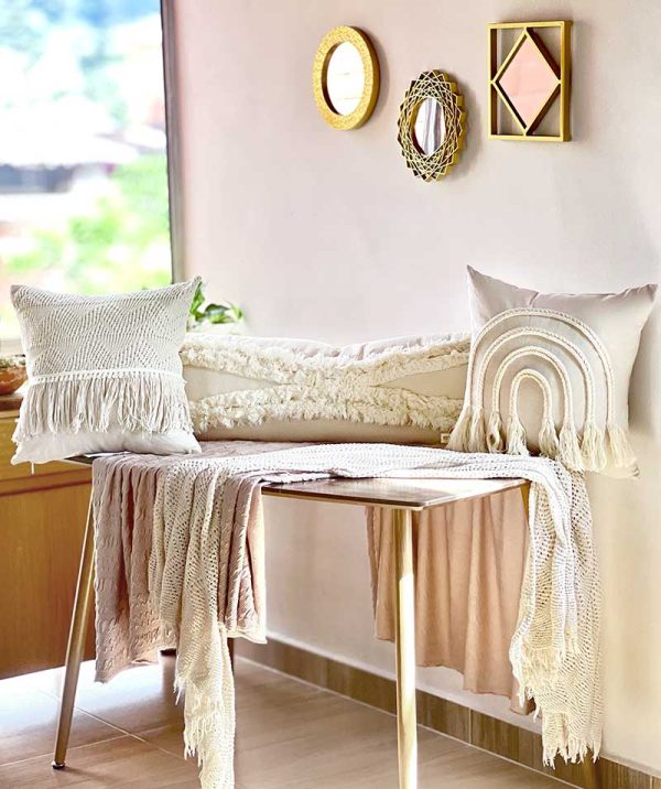 Tejido elaborado 100% a mano, este cojín es ideal para dar vida y color a espacios como salas o habitaciones.