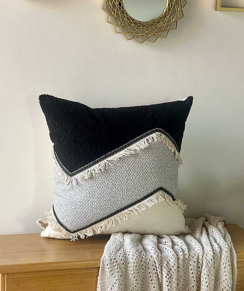 Tejido elaborado 100% a mano, este cojín es ideal para dar vida y color a espacios como salas o habitaciones.