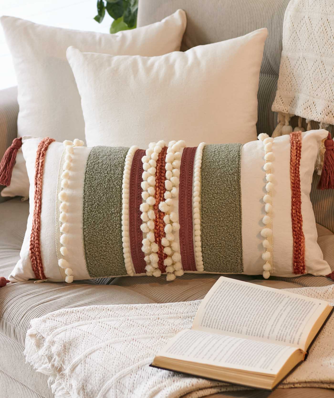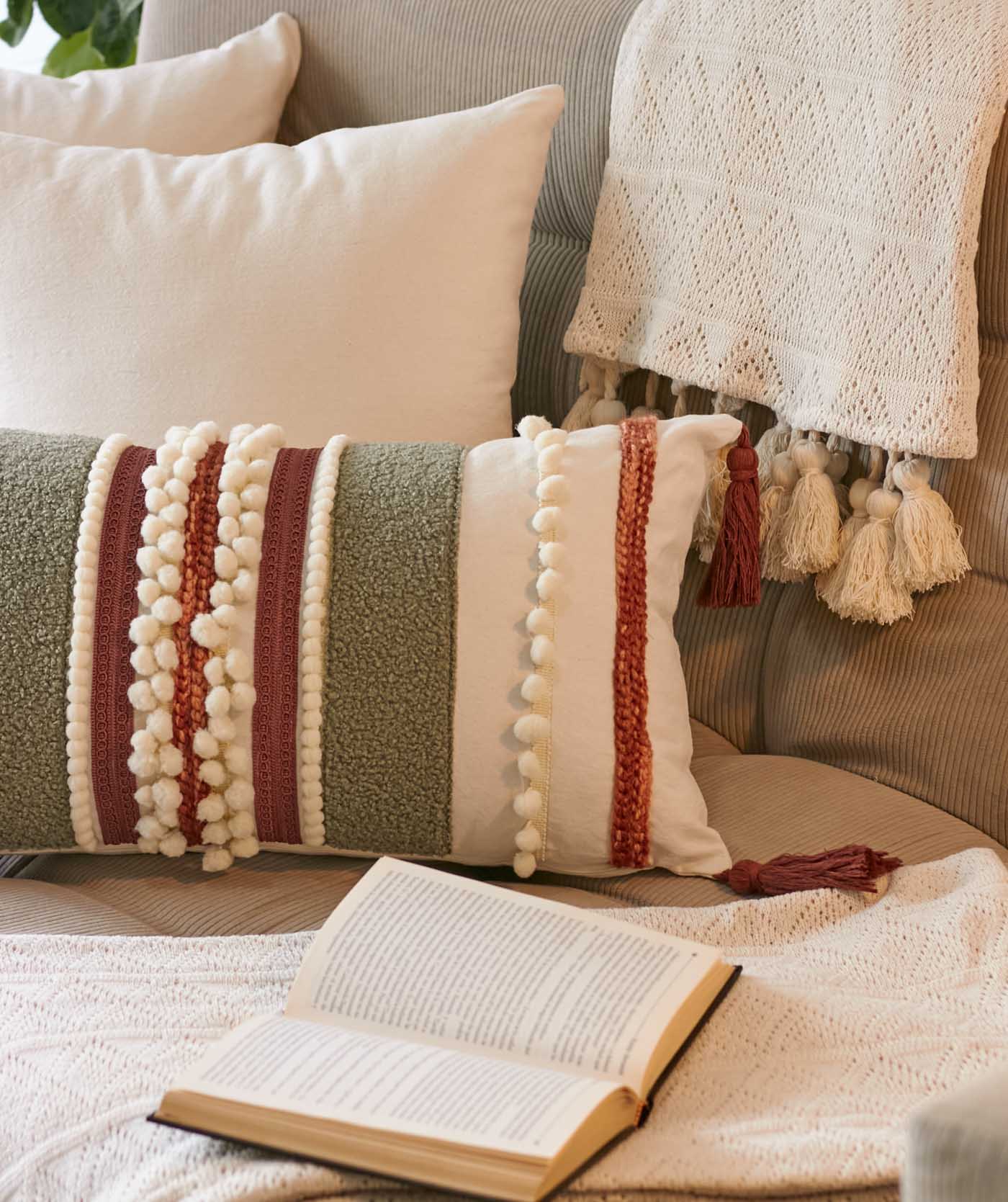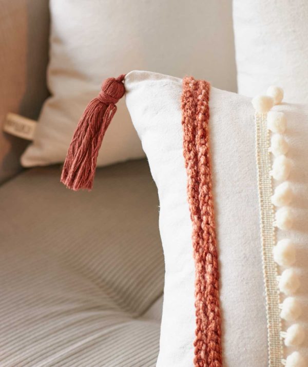 Tejido elaborado 100% a mano, esta funda está elaborada con diferentes tejidos hechos a manos combinando diferentes técnicas.