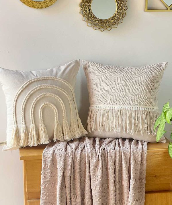 Tejido elaborado 100% a mano, esta funda está elaborada con diferentes tejidos hechos a manos combinando diferentes técnicas.