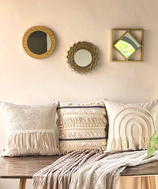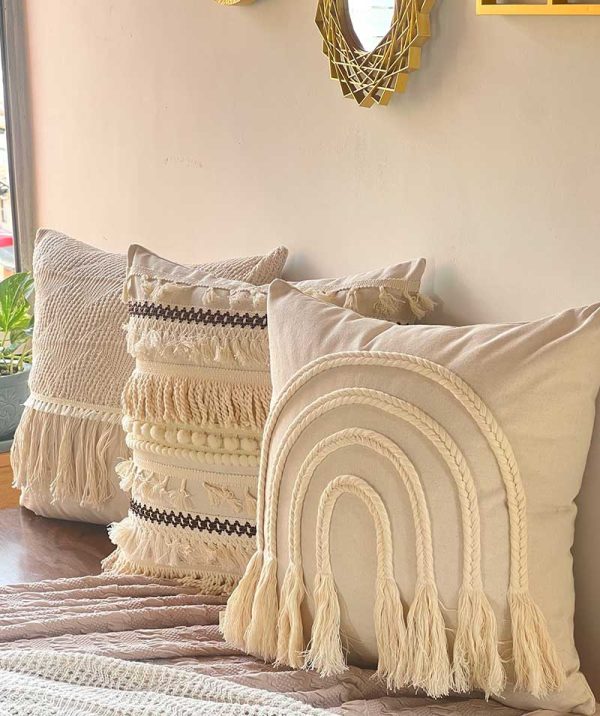 Tejido elaborado 100% a mano, esta funda está elaborada con diferentes tejidos hechos a manos combinando diferentes técnicas.